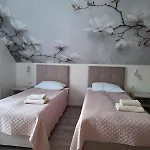 El Restauracja -Zajazd Trzech Braci acoge a los huéspedes en 7 habitaciones, algunas disponen de balcón y vestidor, y ofrecen opciones de autoservicio como servicio de tetera/cafetera. Los huéspedes también pueden utilizar inodoro separado y ducha, además de comodidades como secador de pelo y toallas de baño.